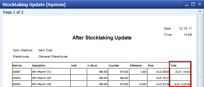 SAP Business One Stock Take