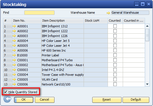 SAP Business One Stock Take