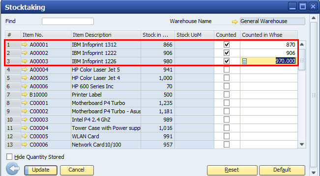 SAP Business One Stock Take